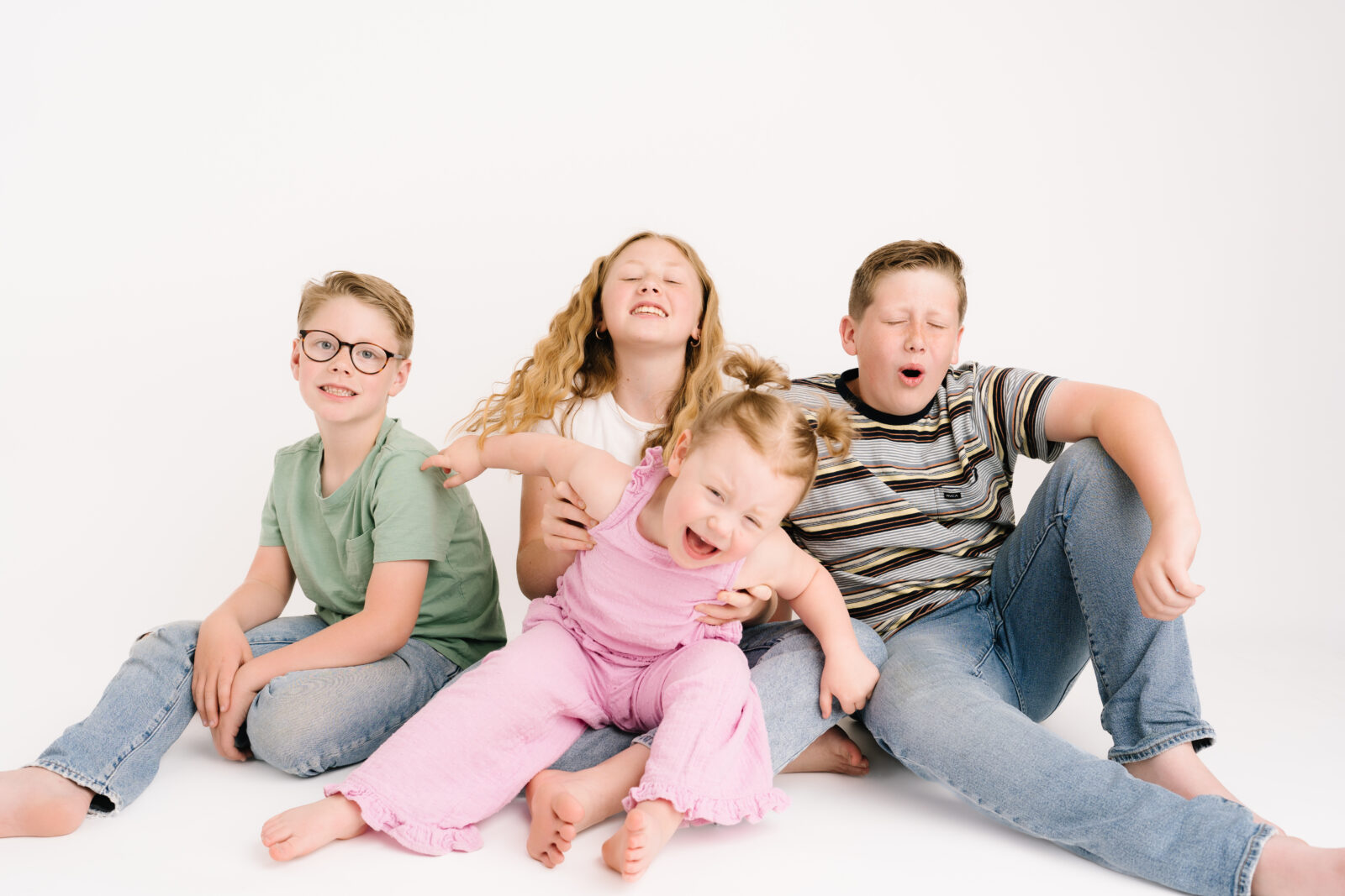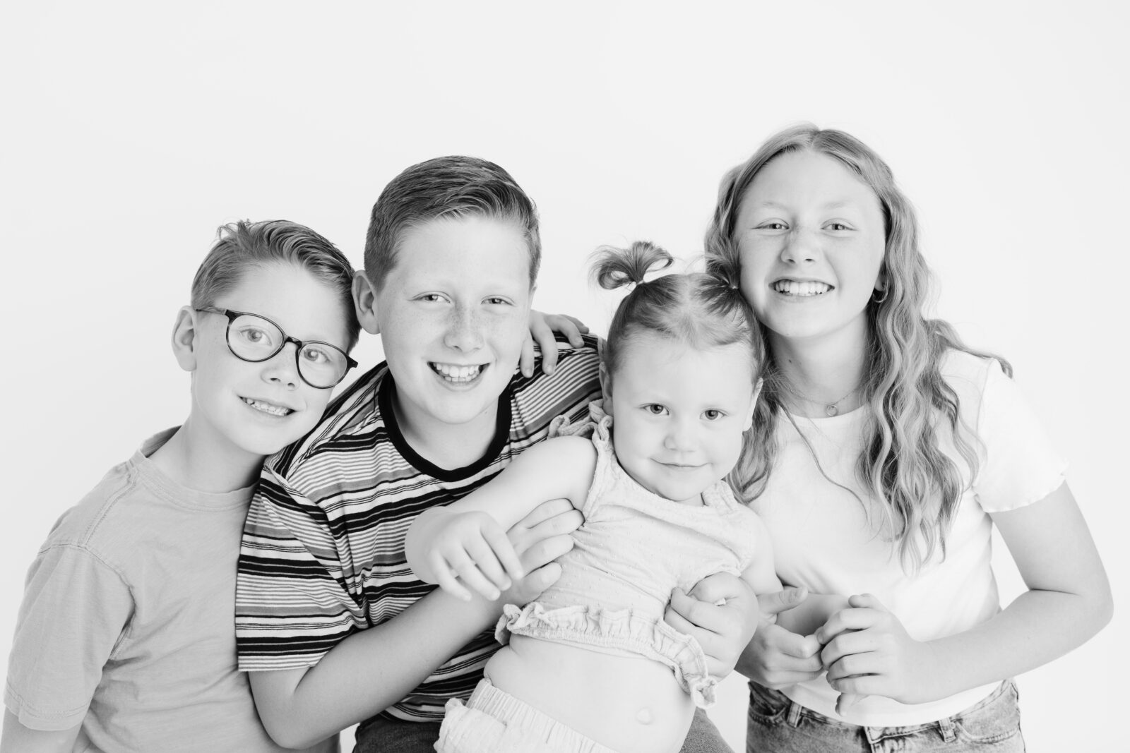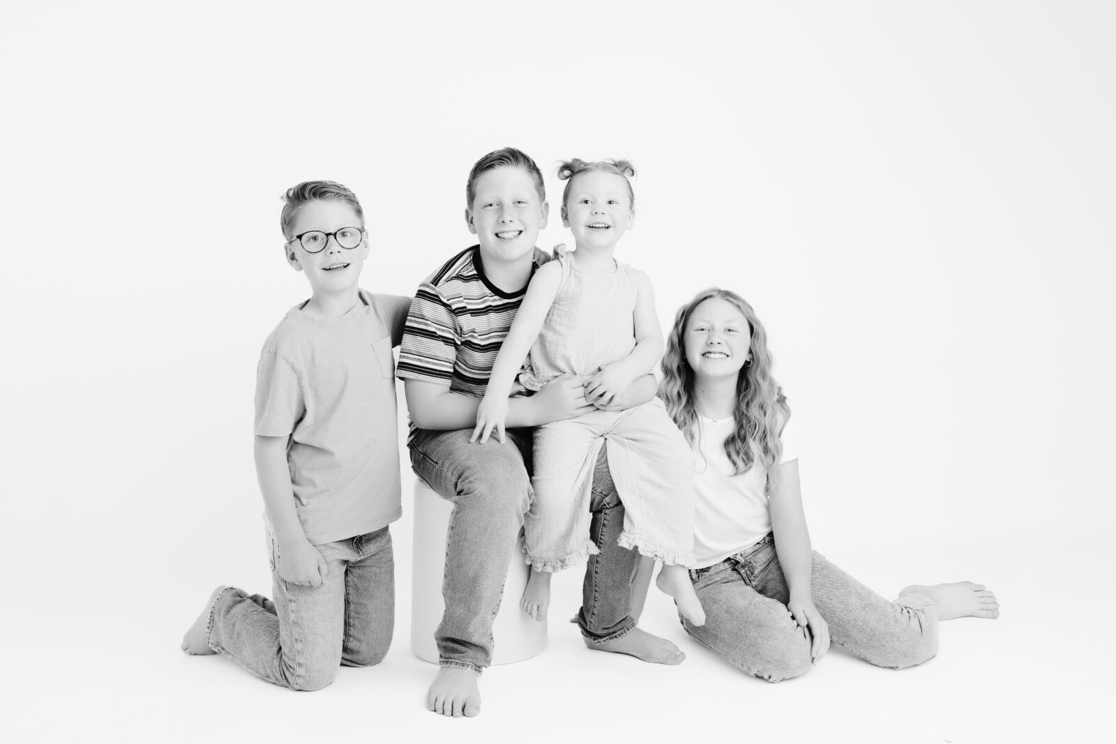 I love studio sessions for families with multiple kids. The clean, simple setup keeps distractions to a minimum and puts all the focus on the kids — their expressions, interactions, and personalities.